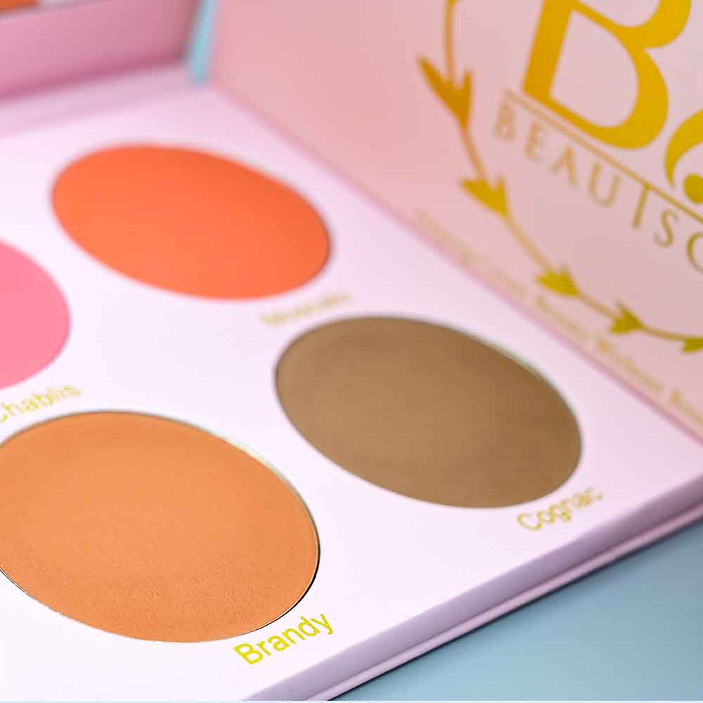 Introducing Beautsome’s Blush Palette, a curated selection of luxurious shades inspired by the rich tones of fine wines. This exquisite palette features six captivating colors, each named after the most indulgent varieties, to add a touch of sophistication and warmth to your complexion.